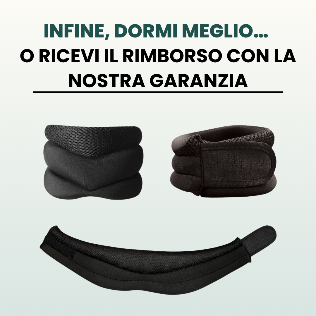 Che tu soffra di russamento o di apnea notturna, il supporto cervicale Releny™ è la soluzione per notti serene, tranquille e senza disturbi.